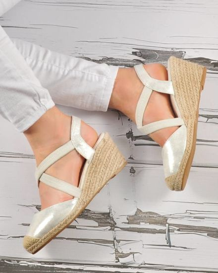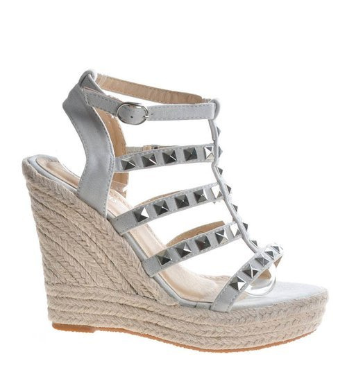 Sandały damskie na koturnie i platformie Srebrne espadryle /A9-1 17868 G187/