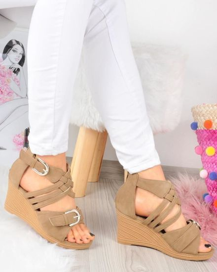 Beżowe sandały na koturnie i platformie Givana /C5-1 17689 G384/