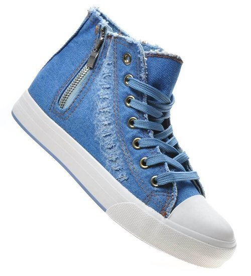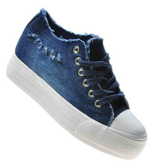 Sznurowane biało niebieskie trampki sneakersy koturnie /C4-3 18048 T284/