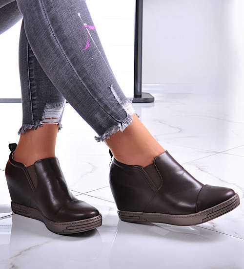 Brązowe trampki damskie na ukrytym koturnie /G12-3 18482 T292/