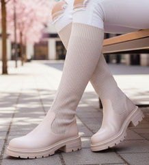 Wysokie kozaki lekko ocieplane elastyczne Beżowe /G4-1 18072 T380/