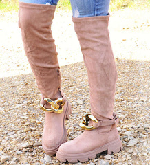 Wysokie zamszowe kozaki z łańcuchem Khaki /A5-1 12724 T707/