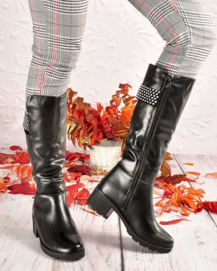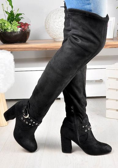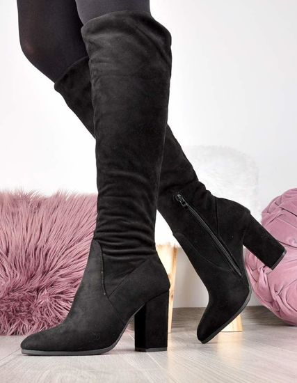 Czarne ocieplane kozaki muszkieterki na słupku /F4-1 18436 T682/