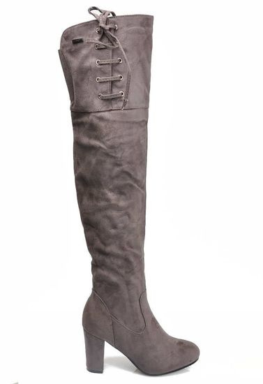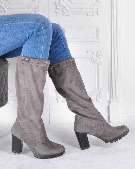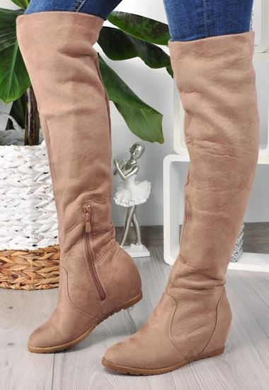 Beżowe wysokie kozaki muszkieterki na obcasie /A4-3 18383 W484/