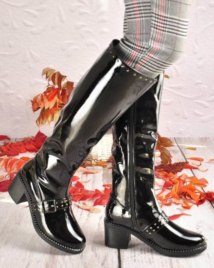 Klasyczne kozaki na obcasie czarne lekko ocieplane /K3-2 H2 18520 T433/