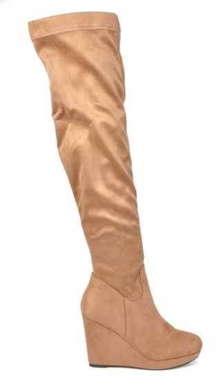 Ocieplane karmelowe kozaki damskie na niskim koturnie /i6-3 H2 18426 T386/