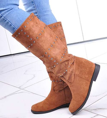 Beżowe kozaki damskie z suwakiem /D8-3 18134 T397/