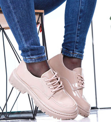 Beżowe sznurowane loafersy damskie /F3-2 15341 T349/