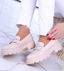 Beżowe loafersy mokasyny na platformie /B3-2 12362 T791/