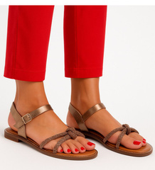 Złote sandały na płaskim obcasie z cyrkoniami /G11-2 16302 T282/