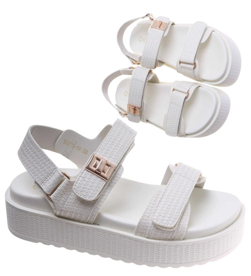 Białe damskie sandały na platformie /G9-2 17565 T130/