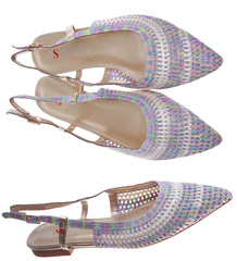 Białe płaskie sandały z cyrkoniami /E6-2 16380 G079/