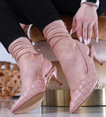 Beżowe czółenka szpilki z paskiem /A3-2 16196 G155/