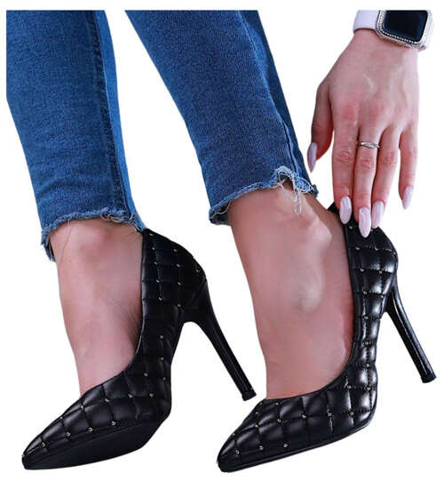 Czarne wyszczuplające szpilki z cyrkoniami /A1-1 13960 T134/