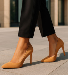 Szpilki w klasycznym fasonie powinny obowiązkowo znaleźć się w szafie każdej eleganckiej kobiety. Klasyczne buty na wysokim obcasie optycznie wydłużają sylwetkę, wyszczuplają ją, dodają kobiecości i pewności siebie. Proste czarne lub czerwone szpilki o ponadczasowym wzornictwie świetnie pasują do niemal każdego stroju. Idealnie komponują się nie tylko z casualowymi zestawami do pracy, ale przede wszystkim – dopełniają eleganckie stylizacje na wyjątkowe okazje. Wygodne i stabilne klasyczne szpilki świetnie sprawdzają się także do chodzenia na co dzień, do zestawów w stylu casual elegance. Uniwersalne modele szpilek od lat nie wychodzą z mody, można łączyć je w zestawy zarówno z sukienkami i spódnicami, jak i z legginsami, spodniami i rurkami. Stonowane szpilki w klasycznym stylu to idealny wybór dla kobiet, ceniących sobie prostotę, wygodę i elegancję.