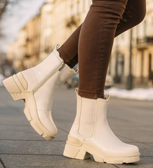 Beżowe botki damskie na płaskim obcasie wsuwane /L3-2 18507 W232/