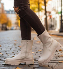 Beżowe botki sztyblety na płaskim grubym obcasie /F5-3 18594 T177/