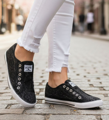 (ilość produktów: 75)Wsuwane czarne damskie trampki slip on /D6-2 12542 T199/