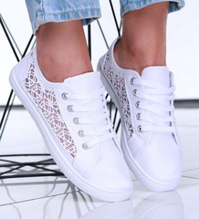 Biało zielone ażurowe koronkowe tenisówki /C3-2 17617 T13-5/