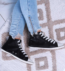 Czarne trampki damskie z wysoką cholewką /E5-2 15283 S097/