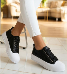 Damskie trampki na platformie Czarne /G3-2 11103 W203/