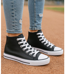Czarne trampki damskie z wysoką cholewką /E5-2 15283 S097/