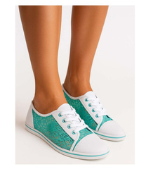 (ilość produktów: 214)Biało zielone ażurowe koronkowe tenisówki /C3-2 17617 T13-5/