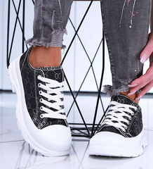 Wiązane czarne trampki na platformie /D2-2 14794 T393/