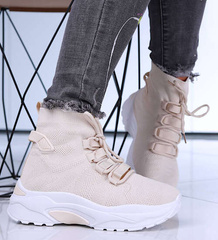 Wiązane srebrne sneakersy z wysoką cholewką /D1-3 14719 T282/