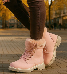 Zimowe botki trapery z futerkiem Różowe /C1-2 18279 T244/