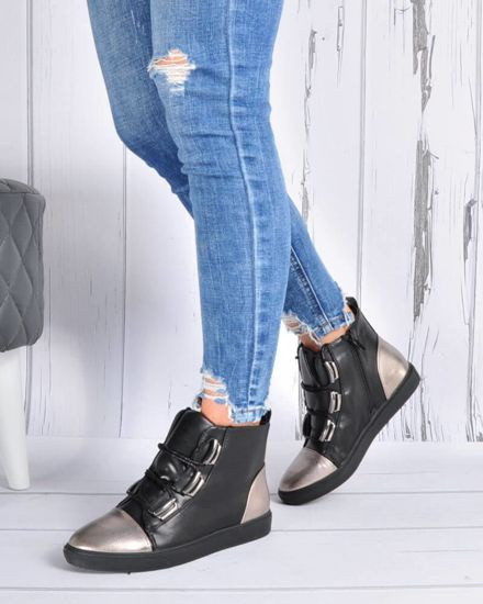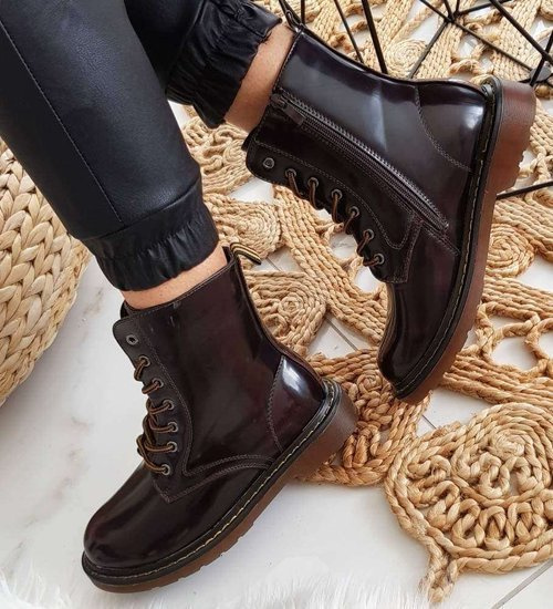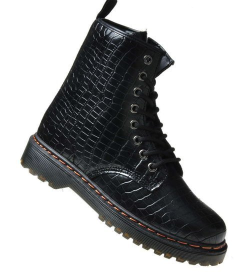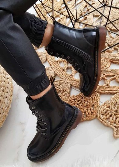 Lśniące botki glany w rockowym stylu Czarne /A2-1 18547 G388/