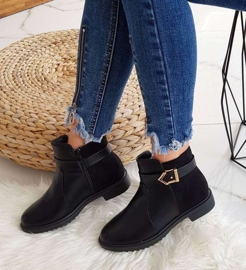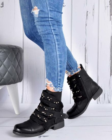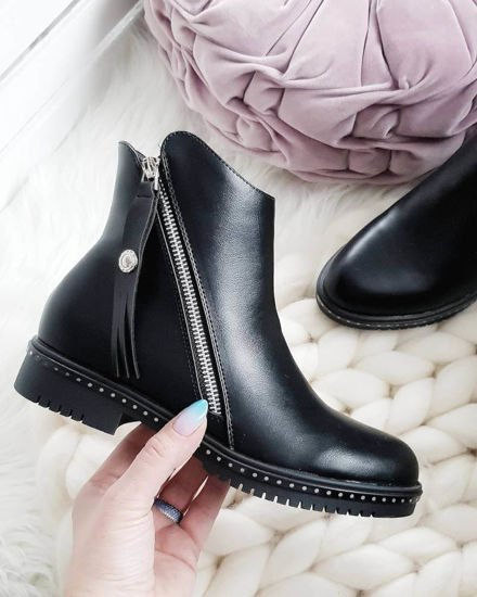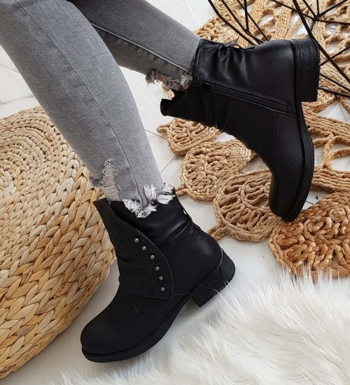 Zimowe botki trapery czarne z cyrkoniami /B2-1 18559 W440/