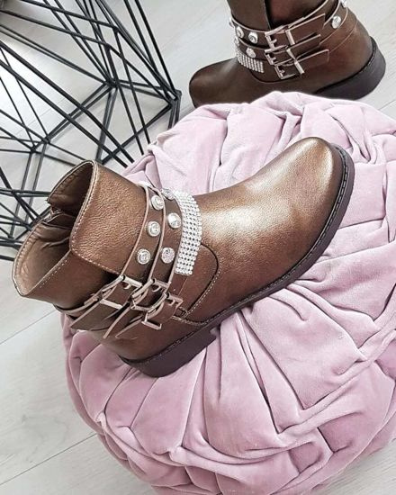 Zimowe botki trapery beżowe z cyrkoniami /A6-1 18574 W440/