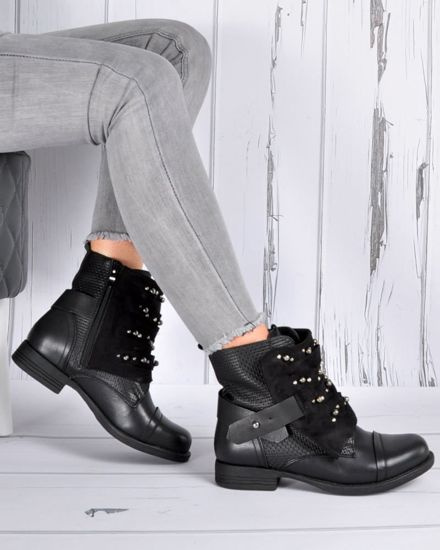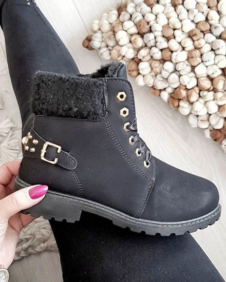 Czarne ocieplane botki workery sznurowane /A10-118576 W386/