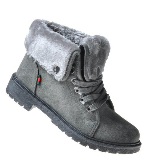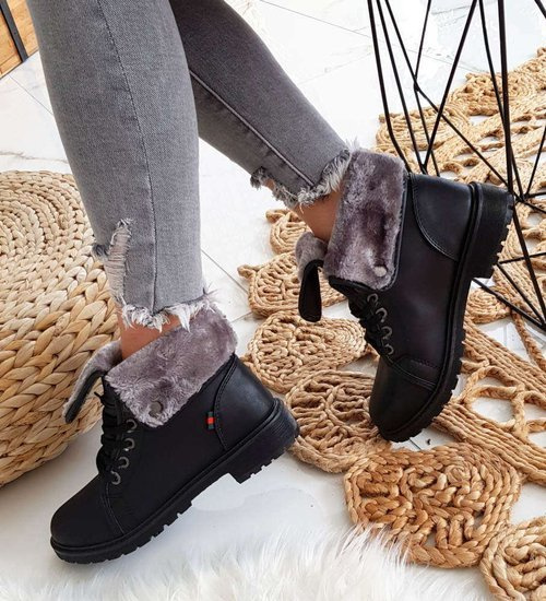 Zimowe botki trapery z wywijaną cholewką Czarne /G3-3 18529 T288/