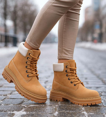 Zimowe botki saszki z ociepleniem beżowe /D1-3 18523 T387/