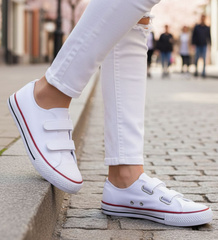 Ocieplane półbuty na rzepy Czarno białe /G5-2 18364 T285/