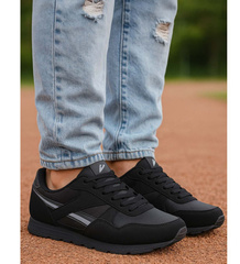 Sznurowane chłopięce buty sportowe Czarno pomarańczowe /G12-1 18089 T333/