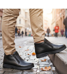 Czarne ocieplane botki męskie z suwakiem /A5-2 18597 T386/