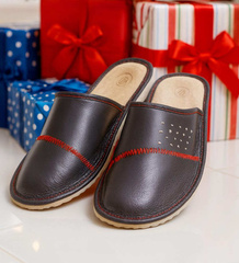 Skórzane męskie klapki domowe kapcie /E6-1 4832 S196/