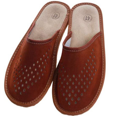 (ilość produktów: 41)Skórzane brązowe kapcie dla dziadka /G9-1 7375 S199/