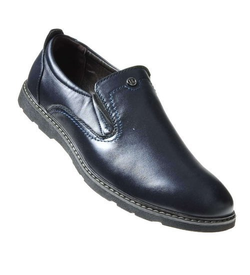 Wsuwane ażurowe męskie półbuty Granatowe /B5-3 17867 T398/
