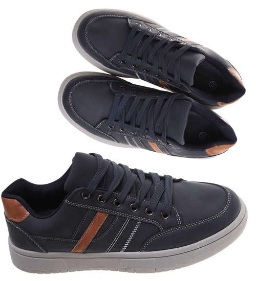 (ilość produktów: 99)Granatowe wiązane męskie trampki z szarą podeszwą /F10-3 17982 T398/