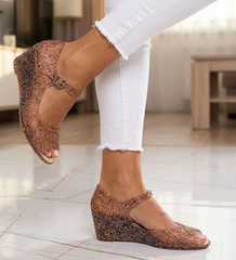 (ilość produktów: 179)Wodoodporne sandały meliski na koturnie Złote Kryte /H2 14573 T088/