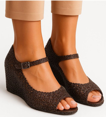 Plażowe sandały meliski na koturnie Czarne /H2 14567 T890/
