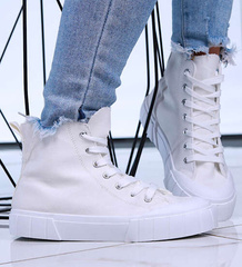 Białe sneakersy damskie na niskim koturnie /E7-1 15595 T489/