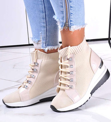 Beżowe trampki z wysoką cholewką /G13-3 11121 W206/