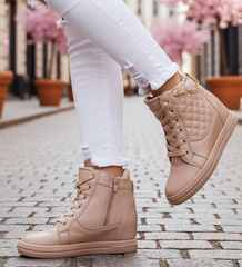 Beżowe sneakersy damskie na koturnie /F8-3 12771 T796/