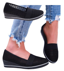 Czarne koronkowe tenisówki na niskim koturnie /G7-2 15897 T256/