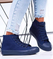 Klasyczne granatowe trampki damskie jeansowe z wysoką cholewką /H2 16708 G9-84/